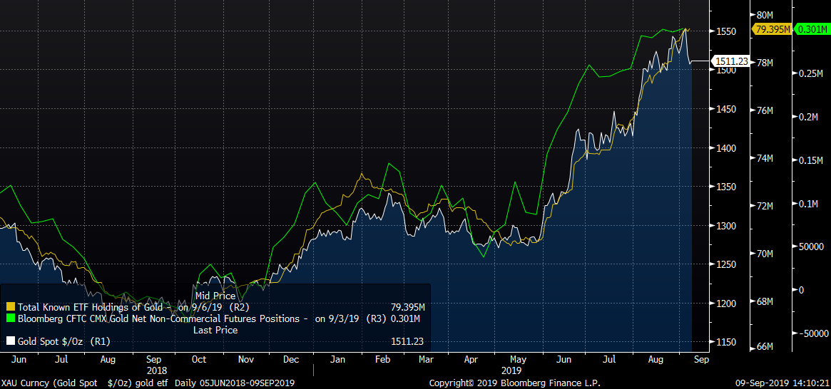 La demande des ETF a entraîné une hausse des prix de l'or ces dernières semaines. Source: Bloomberg