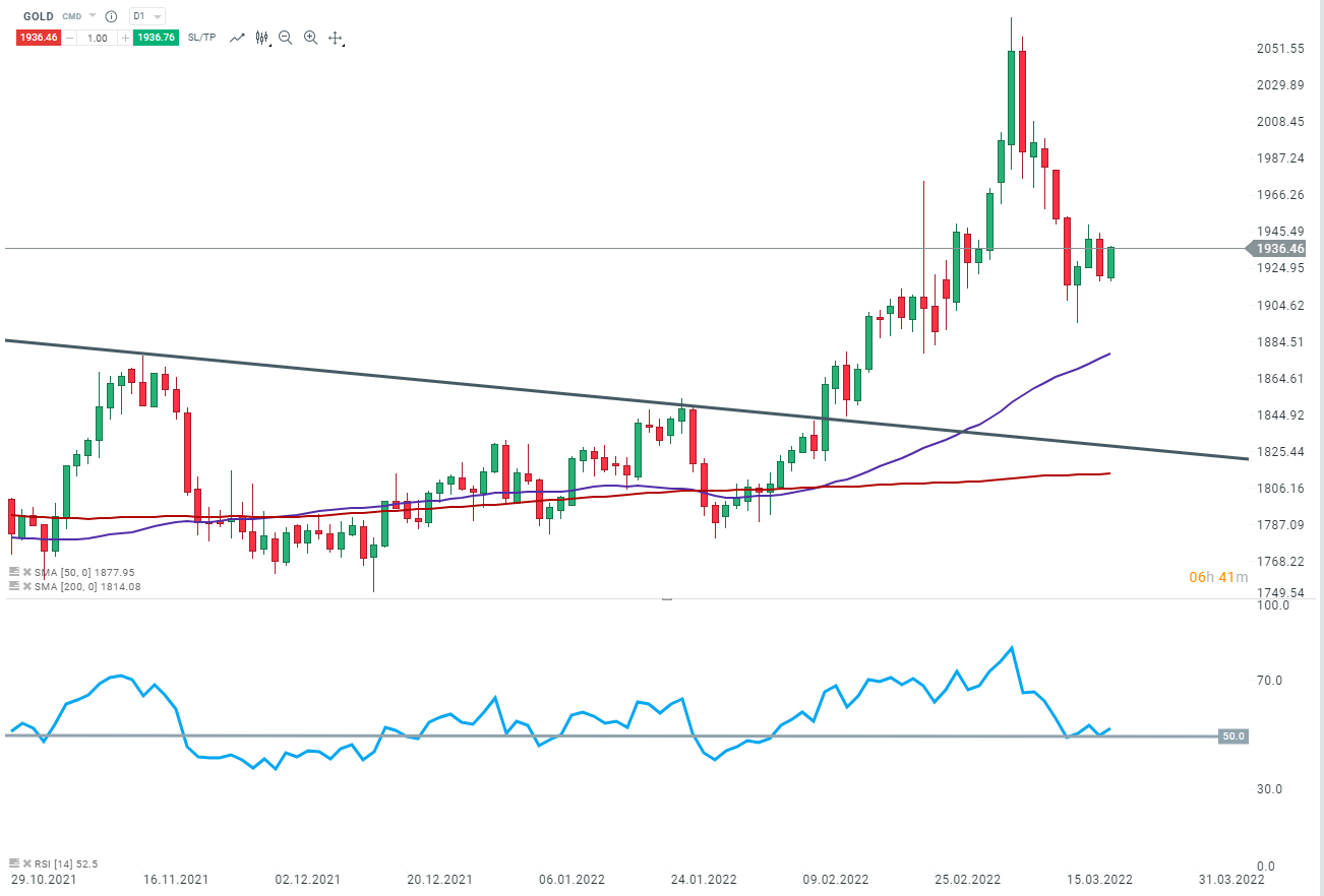 L’or (GOLD), intervalle D1, source : xStation5
