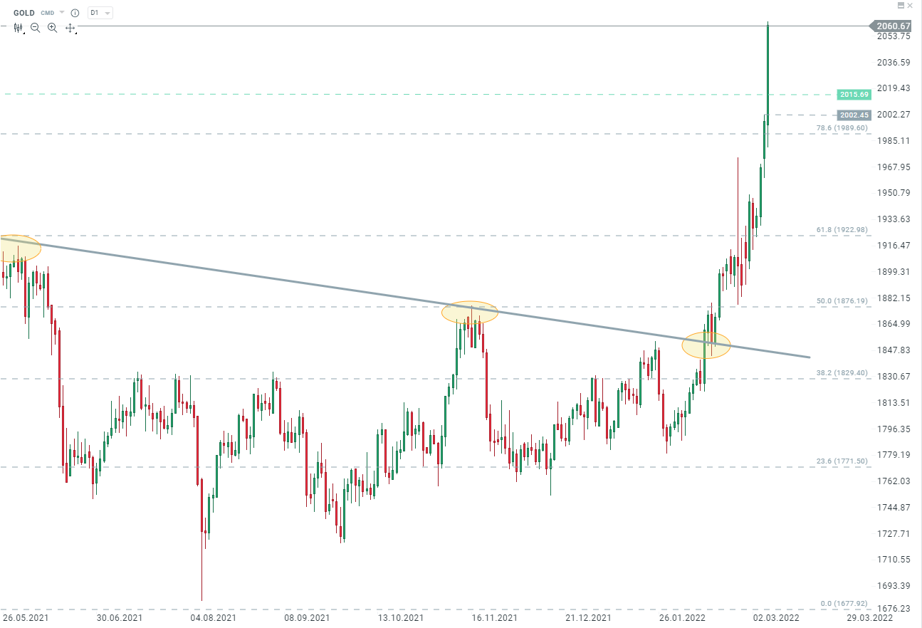 "Ce contenu est une communication marketing au sens de l'art. 24, paragraphe 3, de la directive 2014/65 /UE du Parlement européen et du Conseil du 15 mai 2014 concernant les marchés d'instruments financiers et modifiant la directive 2002/92 /CE et la directive 2011/61 /UE (MiFID II). La communication marketing n'est pas une recommandation d'investissement ou une information recommandant ou suggérant une stratégie d'investissement au sens du règlement (UE) n°596/2014 du Parlement européen et du Conseil du 16 avril 2014 sur les abus de marché (règlement sur les abus de marché) et abrogeant la directive 2003/6 / CE du Parlement européen et du Conseil et directives 2003/124 / CE, 2003/125 / CE et 2004/72 / CE de la Commission et règlement délégué (UE) 2016/958 de la Commission du 9 mars 2016 complétant le règlement (UE) n°596/2014 du Parlement européen et du Conseil en ce qui concerne les normes techniques de réglementation relatives aux modalités techniques de présentation objective de recommandations d'investissement ou d'autres informations recommandant ou suggérant une stratégie d'investissement et pour la divulgation d'intérêts particuliers ou d'indications de conflits d'intérêt ou tout autre conseil, y compris dans le domaine du conseil en investissement, au sens de l'article L321-1 du Code monétaire et financier. L’ensemble des informations, analyses et formations dispensées sont fournies à titre indicatif et ne doivent pas être interprétées comme un conseil, une recommandation, une sollicitation d’investissement ou incitation à acheter ou vendre des produits financiers. XTB ne peut être tenu responsable de l’utilisation qui en est faite et des conséquences qui en résultent, l’investisseur final restant le seul décisionnaire quant à la prise de position sur son compte de trading XTB. Toute utilisation des informations évoquées, et à cet égard toute décision prise relativement à une éventuelle opération d’achat ou de vente de CFD, est sous la responsabilité exclusive de l’investisseur final. Il est strictement interdit de reproduire ou de distribuer tout ou partie de ces informations à des fins commerciales ou privées. Les performances passées ne sont pas nécessairement indicatives des résultats futurs, et toute personne agissant sur la base de ces informations le fait entièrement à ses risques et périls. Les CFD sont des instruments complexes et présentent un risque élevé de perte rapide en capital en raison de l'effet de levier. 75% de comptes d'investisseurs de détail perdent de l'argent lors de la négociation de CFD avec ce fournisseur. Vous devez vous assurer que vous comprenez comment les CFD fonctionnent et que vous pouvez vous permettre de prendre le risque probable de perdre votre argent. Avec le Compte Risque Limité, le risque de pertes est limité au capital investi."