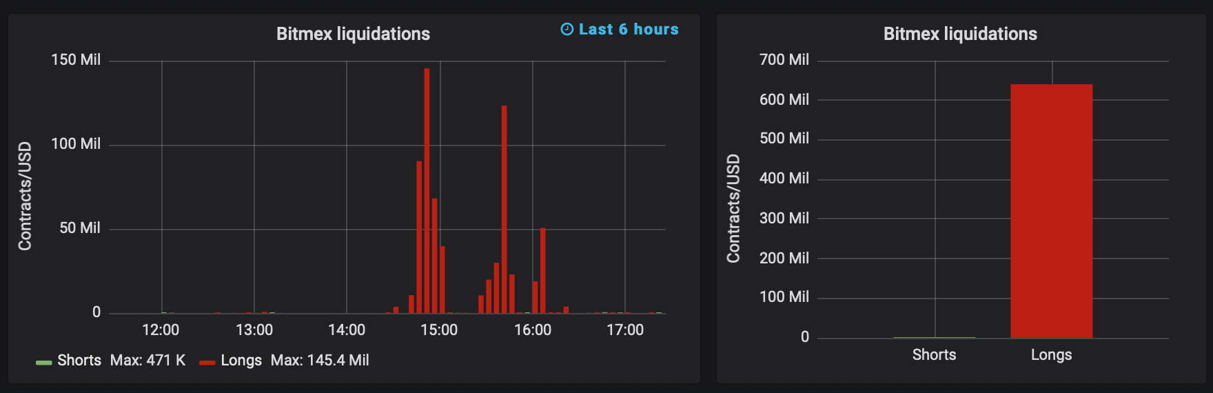 Les appels de marge ont commencé à se déclencher mercredi soir à partir de 20h30, entrainant une chute brutale du Bitcoin. Source : Datamish