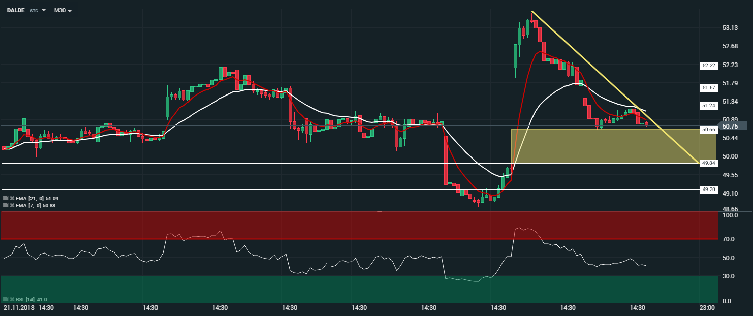 Représentation du titre Daimler (DAI.DE) en unité de temps 30 minutes (M30)