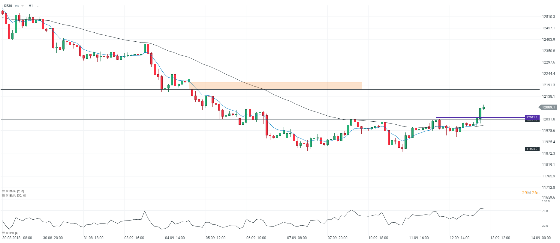 Représentation technique de l’indice DAX30, en H1