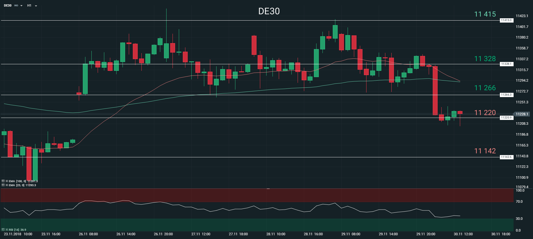 Au moment où nous écrivons ces lignes, le DAX 30 accuse un repli de 0,78 % à 11 227 points. Sur le plan technique, la toile de fond est foncièrement baissière en unité de temps horaire (H1). En effet, nous observons sur le graphique ci-dessus que les prix sont capés par les moyennes mobiles à 25 et 100 périodes, et ce, depuis plusieurs heures. Malgré la tendance actuelle, nous remarquons que les prix sont résilients au-dessus des 11 220 points. C’est pourquoi nous conservons un biais positif sur le DAX 30 et pensons qu’il reste susceptible de rallier les 11 260 points. Néanmoins, en cas de cassure du support des 11 200 points, nous aurons un biais vendeur sur l’indice en direction des 11 180 points.