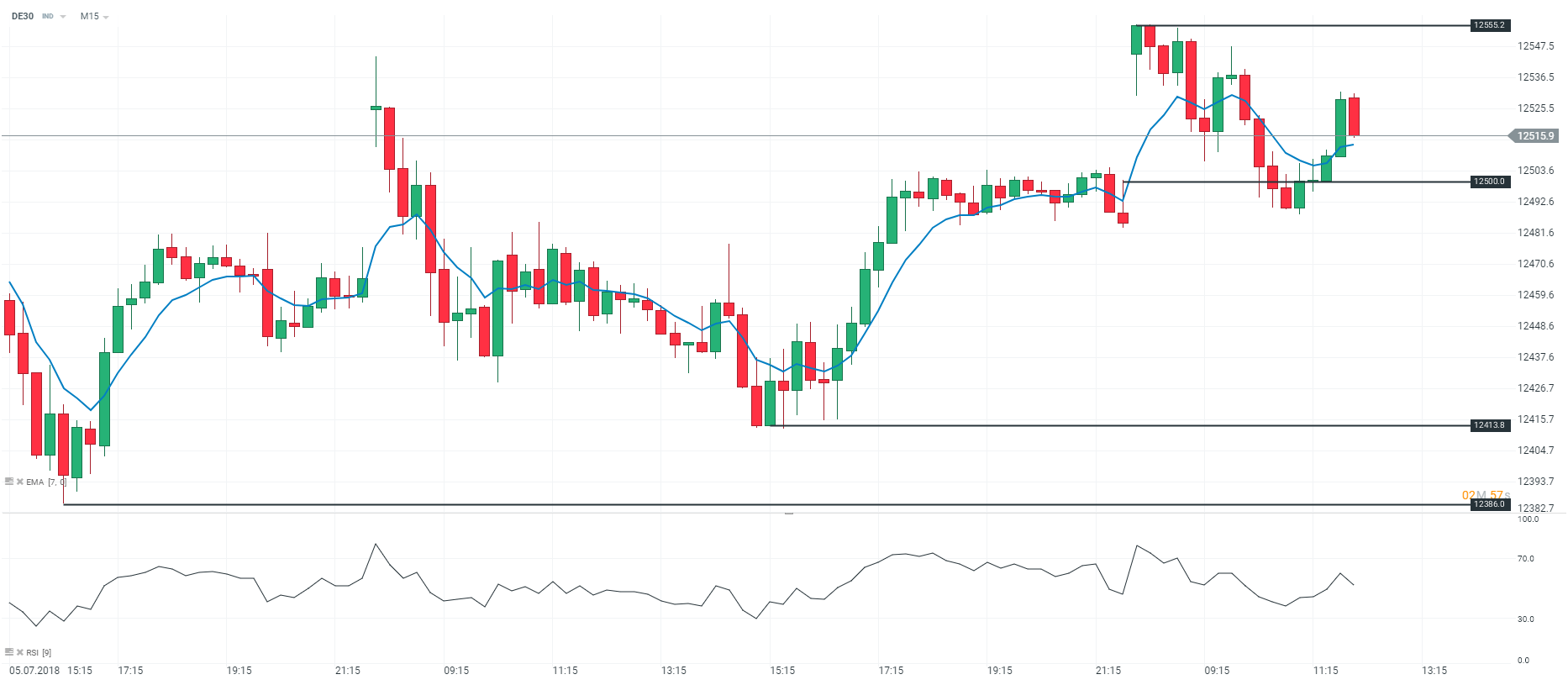 D'ici 18h00, nous serons haussiers sur le DAX30 pour nos opérations à très court terme au-dessus de la zone technique des 12 500 points. Nous orienterons nos opérations de Scalping à la hausse au-dessus de ce niveau-clé.