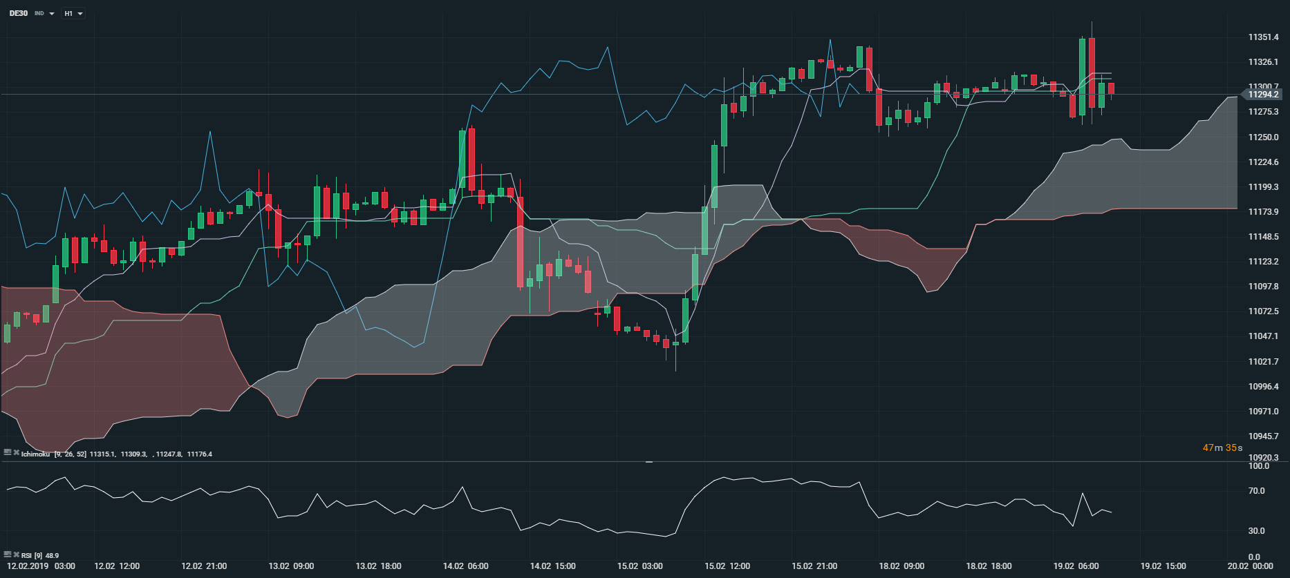 Représentation technique de l’indice DAX 30, en H1