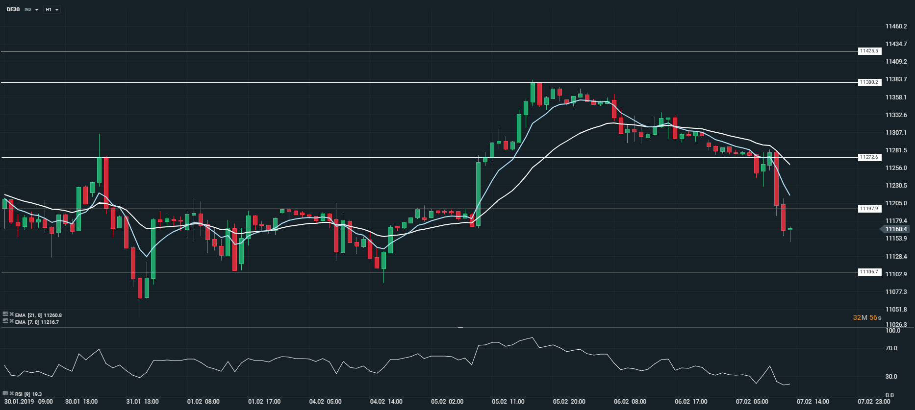 Pour l’heure, le DAX évolue dans une trame baissière sous les 11 209 points. En unité de temps horaire (H1), l'indice est en forte chute depuis la publication de la production industrielle. De plus, dans la mesure où les prix fluctuent sous la résistance des 11 228 points, il est probable qu’à court terme les cours rallient les 11 133 points.