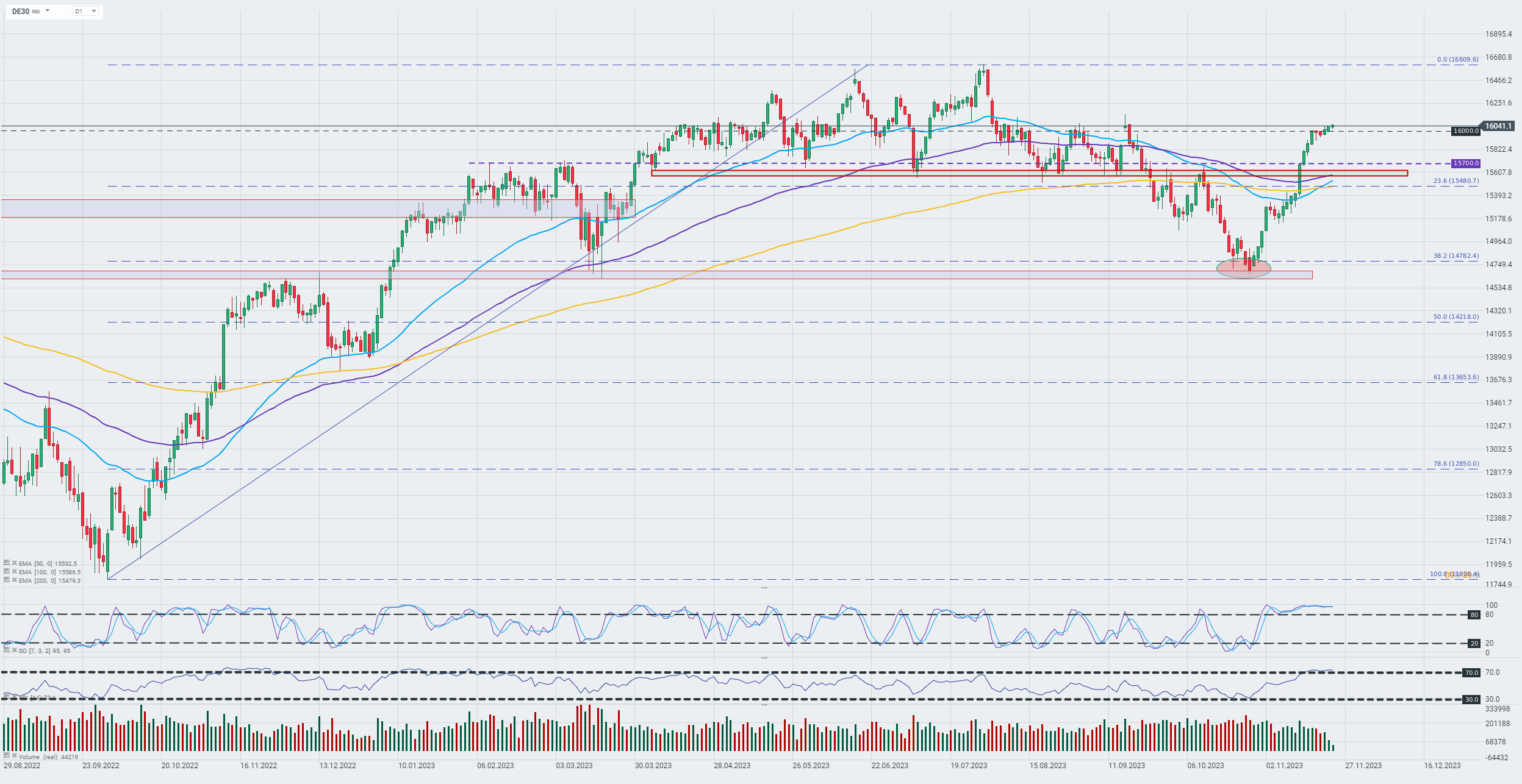 - Le DE30 reste au-dessus de la barrière des 16 000 points le dernier jour de la semaine.