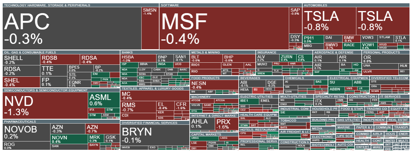 La séance de jeudi sur les marchés européens se déroule dans une atmosphère plus positive. Les investisseurs suivent de près les nouvelles concernant le financement du budget allemand pour la nouvelle année après que la Cour constitutionnelle ait retenu des centaines de milliards d'euros de financement pour des fonds spéciaux qui ne sont pas couverts par le budget fédéral. Le ministère des Finances allemand cherche à évaluer les effets et les détails de la situation estimant son impact sur les dépenses de l'État dans la nouvelle année fiscale, temporairement gelée. Cependant, la situation problématique n'a pas eu d'impact négatif sur le marché boursier et les entreprises liées aux achats de l'État ne connaissent pas de déclins majeurs.