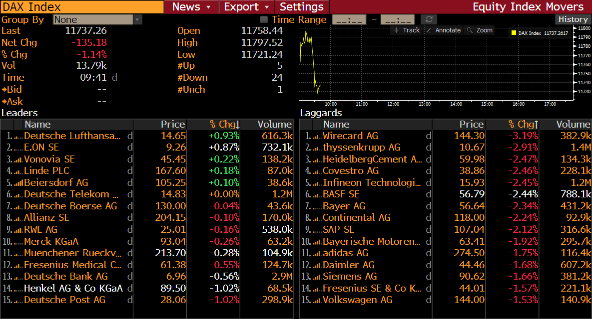 La majorité des actions du DE30 reste sous pression à la vente au début de la nouvelle semaine. Source: Bloomberg