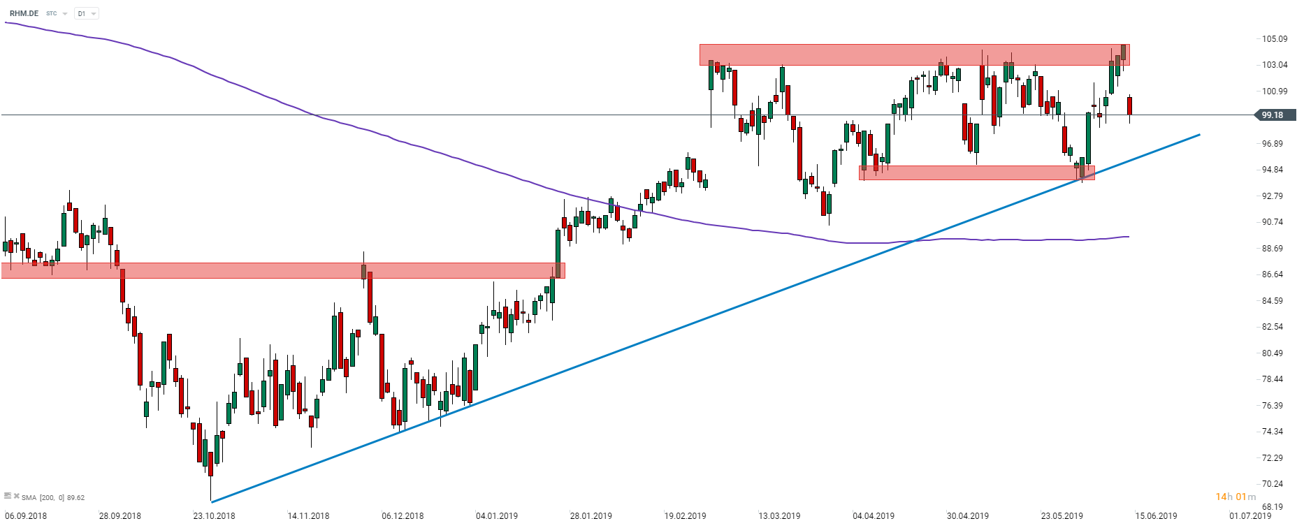 Rheinmetall (RHM.DE) a chuté à la séance d’aujourd’hui après la recommandation d’Oddo. Les actions se négocient entre 94 et 104 € depuis le début du deuxième trimestre. Notez que le titre se négocie au-dessus d’une oblique majeure et tant que les prix restent au-dessus de ce seuil, la situation semble favoriser les haussiers. Source: xStation5
