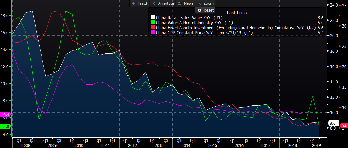 Les données industrielles chinoises restent modérées en mai, mais les ventes au détail ont surpris à la hausse. Source: Bloomberg