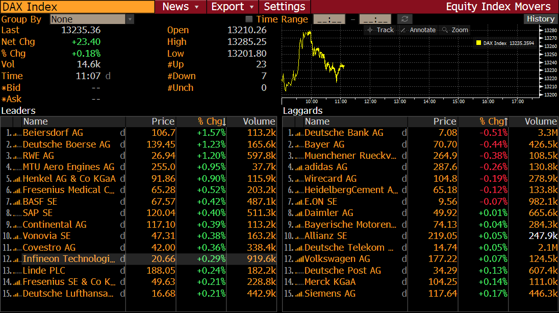 Les membres du DAX à 11h07. Source : Bloomberg