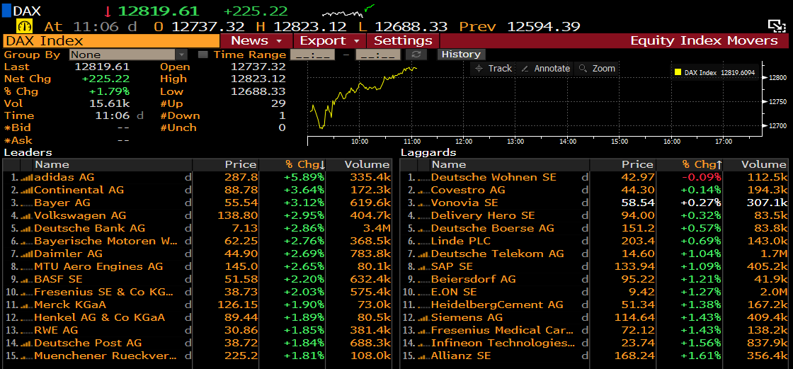 Membres du DAX à 11h06 . Source : Bloomberg