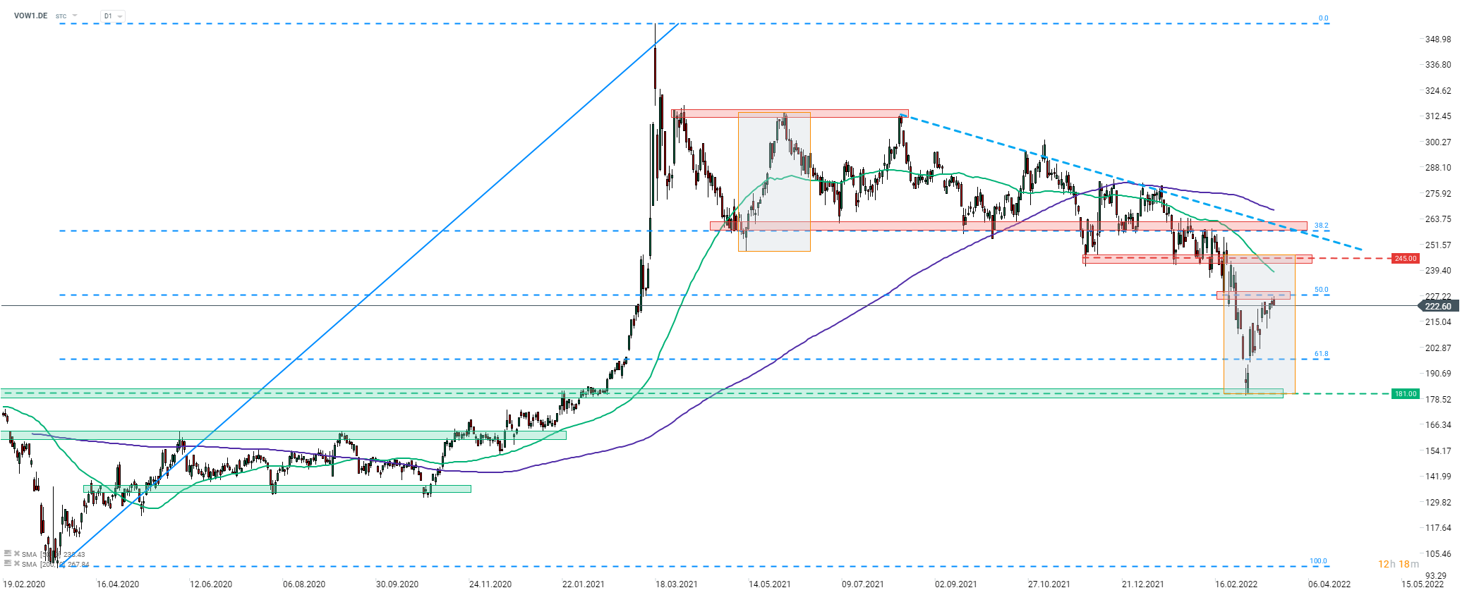 Malgré l'annonce de plans d'investissement ambitieux, Volkswagen (VOW1.DE) se négocie à la baisse aujourd'hui. L'action s'éloigne d'une zone de résistance à court terme marquée par un retracement de 50 % de la hausse post-pandémique. Si les acheteurs parviennent à reprendre le contrôle et à franchir la résistance susmentionnée, l'attention se portera sur la zone des 245,00 €, où se trouve la limite supérieure de la structure Overbalance. Source : xStation5