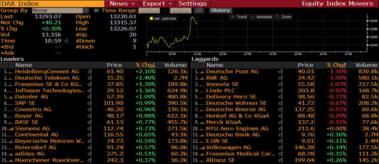 Membres du DAX à 10h59. Source: Bloomberg