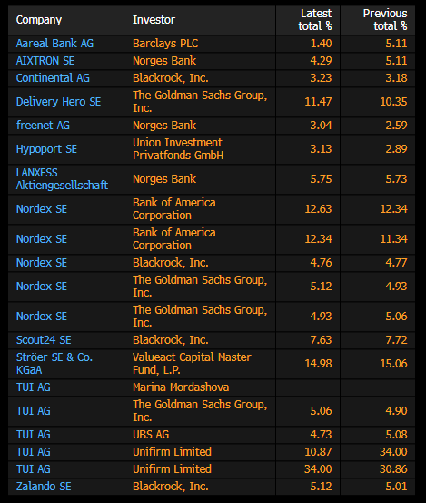 Évolution des participations des institutions dans les sociétés individuelles de l'indice DAX (données de la dernière session). Source : Bloomberg