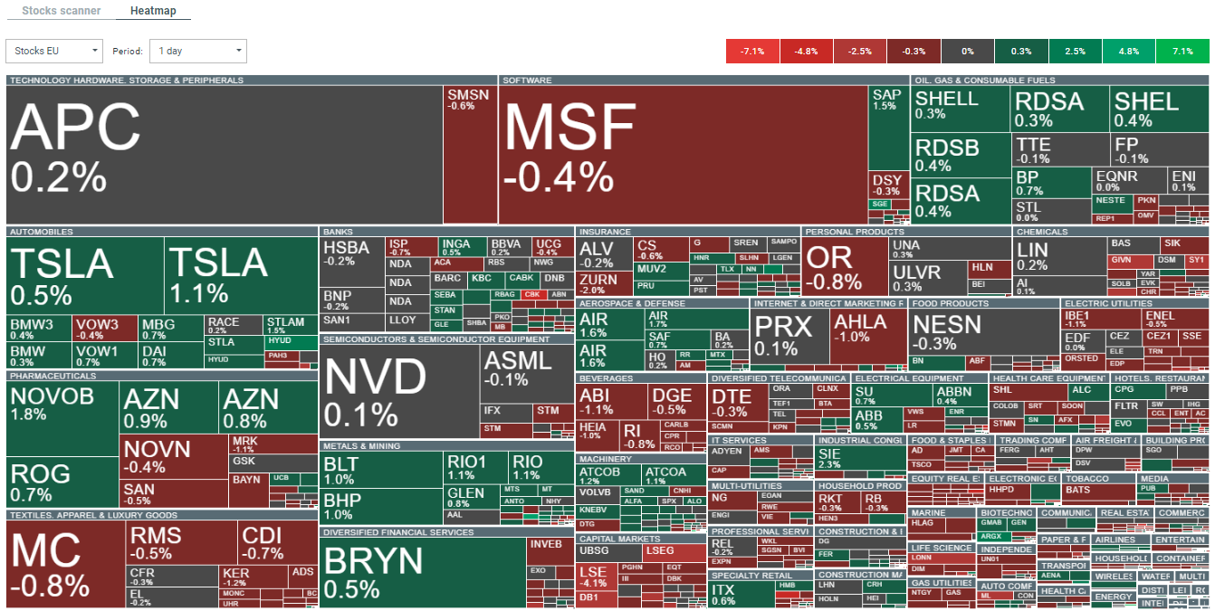 L'ambiance en Europe lors de la séance de négociation de mercredi est relativement mitigée. Source : xStation 5