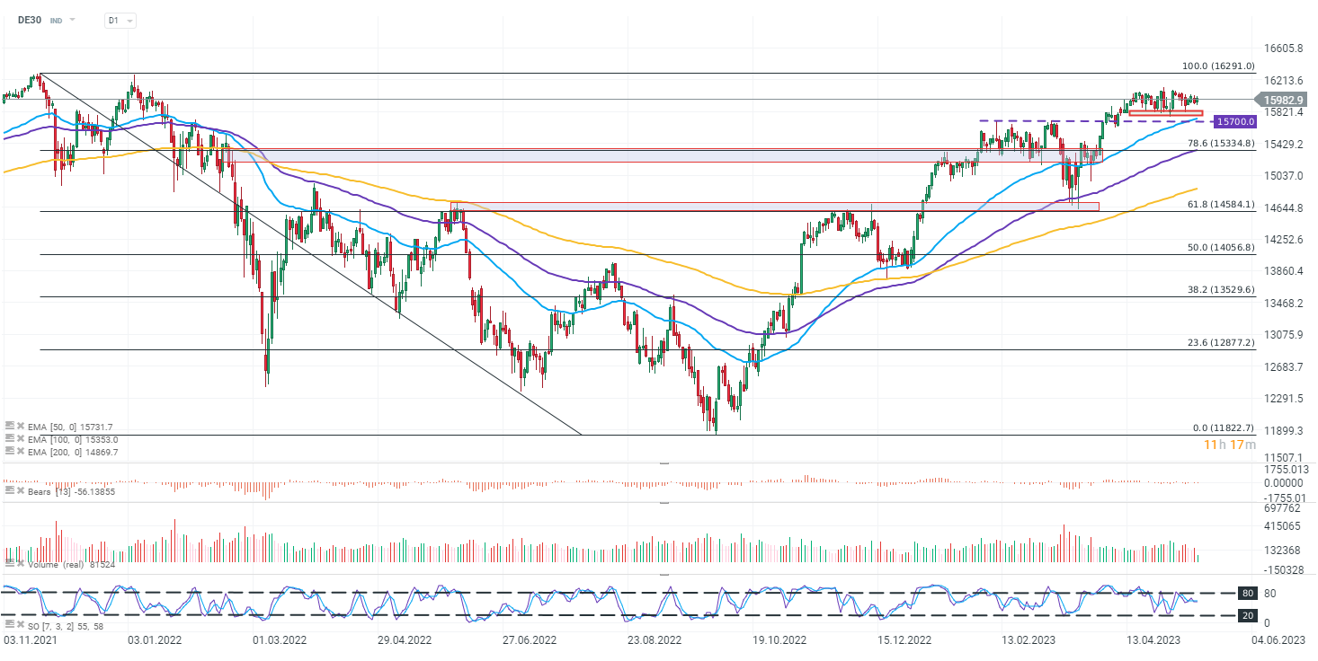 La séance de négociation de mercredi sur les marchés européens suscite un sentiment mitigé parmi les investisseurs. Le DAX allemand (DE30) est en légère hausse aujourd'hui, mais reste dans la structure de consolidation définie autour de ses récents pics locaux. Un examen des données d'inflation de la zone euro n'a montré aucun changement par rapport à la lecture précédente. Le calendrier macro pour la session d'aujourd'hui est relativement médiocre, mais les investisseurs réagiront aux données du marché immobilier américain (14h30).
