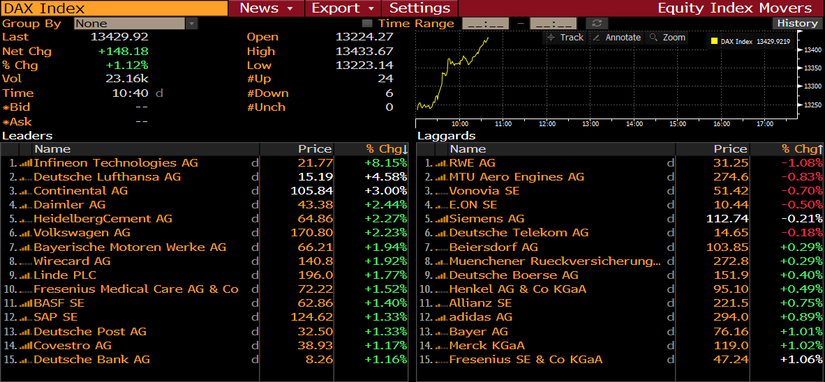 Les actions en Europe sont en hausse pour une nouvelle session, grâce à un rapport sur la découverte d’un remède contre le coronavirus. Les valeurs technologiques, les mineurs et les constructeurs automobiles sont en tête des avancées en Europe. Les actions des Pays-Bas, de la Belgique et de la Russie sont les plus performantes. Infineon progresse aujourd'hui après la publication du rapport trimestriel sur ses résultats.