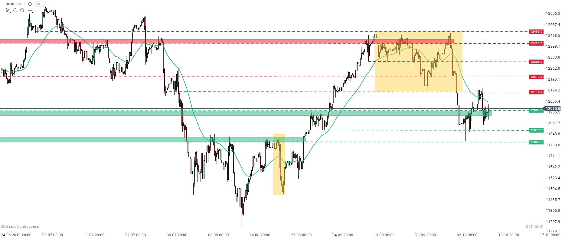 Le DE30 n’a pas réussi à se hisser au-dessus de la limite inférieure de la structure Overbalance brisée plus tôt cette semaine. L'indice est revenu proche de sa zone de support située en dessous des 12 000 pts et a mis fin à son déclin. L’ambiance optimiste au début de la séance d’aujourd’hui permet à l’indice allemand de rebondir plus haut et de s’éloigner du support susmentionné. Au cas où l'humeur optimiste prévaudrait, les acheteurs pourraient essayer de ramener le prix à 12115 pts. Ce niveau devrait constituer la première résistance importante à surveiller. En cas de repli de l'indice il conviendra de surveiller le niveau des 12 000 pts et des 11 800 pts.