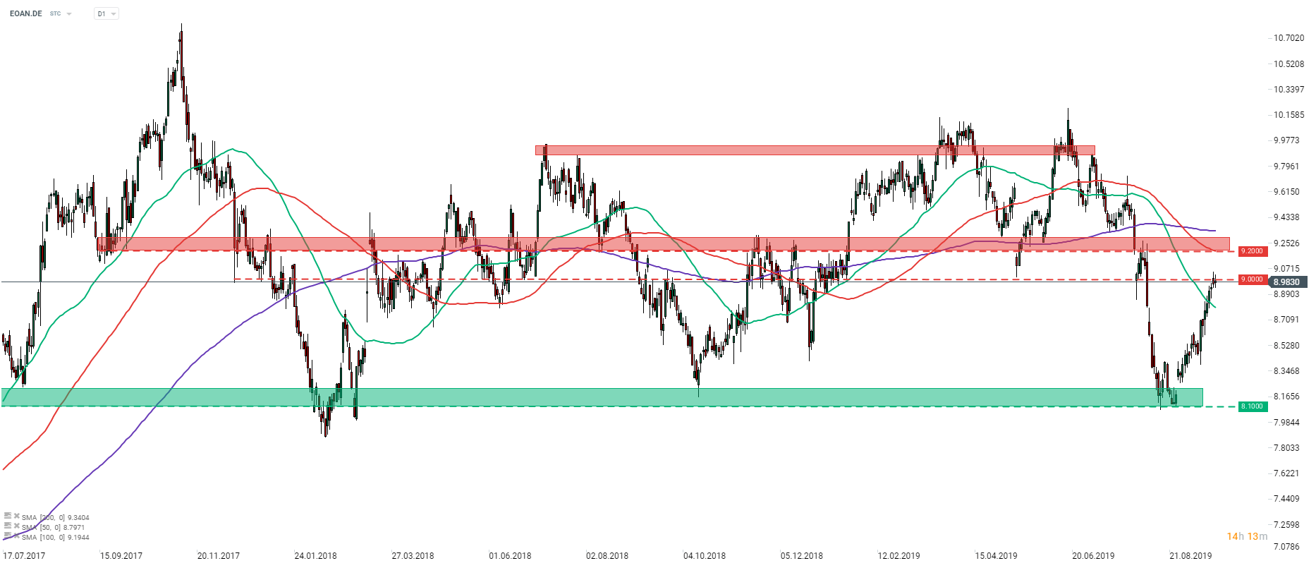 E.ON (EOAN.DE) a réussi à rebondir au-dessus de la zone de résistance à 8,10 € et à marquer la limite inférieure de la fourchette de négociation. Le cours de l’action teste la zone des 9,00 €, au cas où elle parviendrait à casser, une hausse vers la zone des 9,20 € pourrait apparaître. Source: xStation5