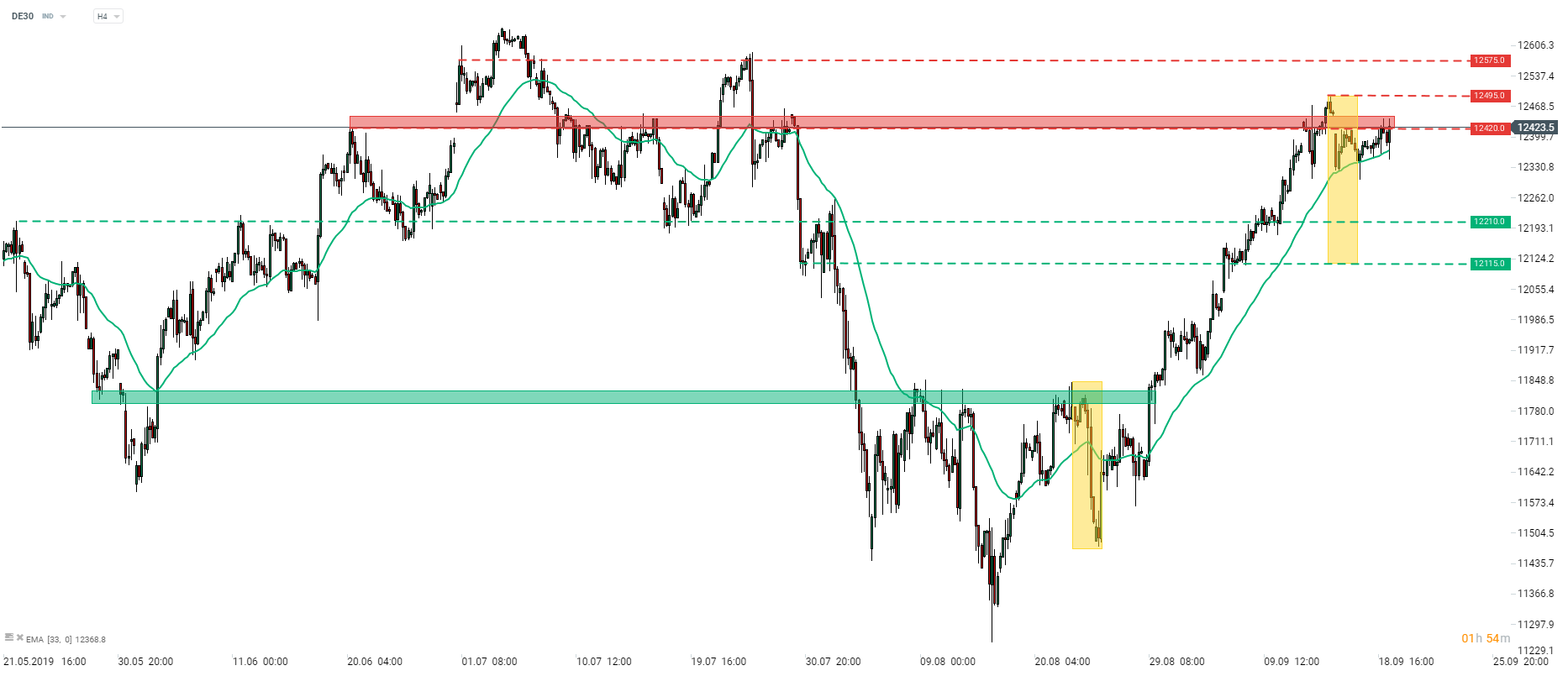 Le DE30 tente de dépasser la zone de résistance située au dessus de 12420 pts