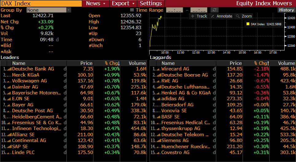 Deutsche Boerse (DB1.DE) figure aujourd'hui parmi les plus grands retardataires du DAX à la suite de la dégradation de la note de la part de la société Berenberg. La banque d'investissement allemande a abaissé la recommandation pour le titre de «conserver» à «couper». La cible de prix a été fixée à 132 €. La société a déclaré que la baisse des taux d’intérêt américains et des taux bas dans la zone euro rend les investisseurs plus prudents quant aux perspectives à long terme, ce qui pourrait les inciter à s’abstenir d’investir.