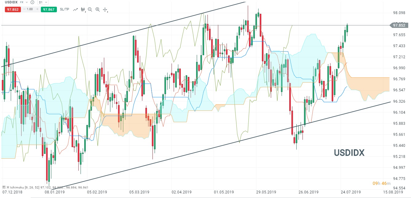 Le problème est que les données américaines dont nous avons pris connaissance, reflètent une économie solide et ne justifie pas une réduction de taux. Depuis la dernière réunion du FOMC au cours du mois de juin, nous avons pris connaissance des ventes au détail et des créations d’emploi aux Etats-Unis, meilleurs que prévu, et nous avons assisté au rebond des commandes de biens durables. De plus, ce vendredi a été publié une première estimation du PIB américain, ressorti à 2,1% contre 1,8% attendus. En revanche, une baisse des ventes d’immobilier neuf et du PMI Manufacturier ont montré des faiblesses de l’économie américaine. Ainsi, Jerome Powell devrait mettre en avant la dégradation des conditions actuelles, en raison de l’incertitude liée au commerce.