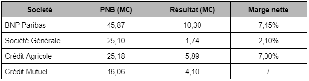Dans un contexte de hausse des taux directeurs, les revenus d’intérêt connaissent une augmentation de façon mécanique, mais de pair avec celle du coût de financement sur les marchés interbancaires ou auprès des banques centrales. Ainsi, cela ne s’est traduit sur le résultat que par une hausse annuelle de 7%, ce qui révèle une baisse de 2,71% du taux de marge.