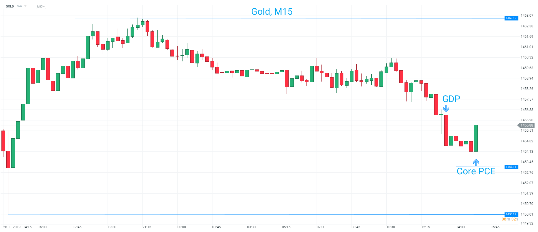 L'or a connu une tendance à la hausse après les dernières données publiées aux États-Unis, le prix s'étant redressé par rapport à son plus bas niveau de la journée à 1453. Source : xStation