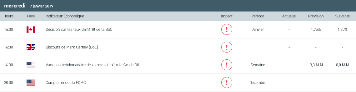 - Décision monétaire de la Banque du Canada (BoC) à 16h00