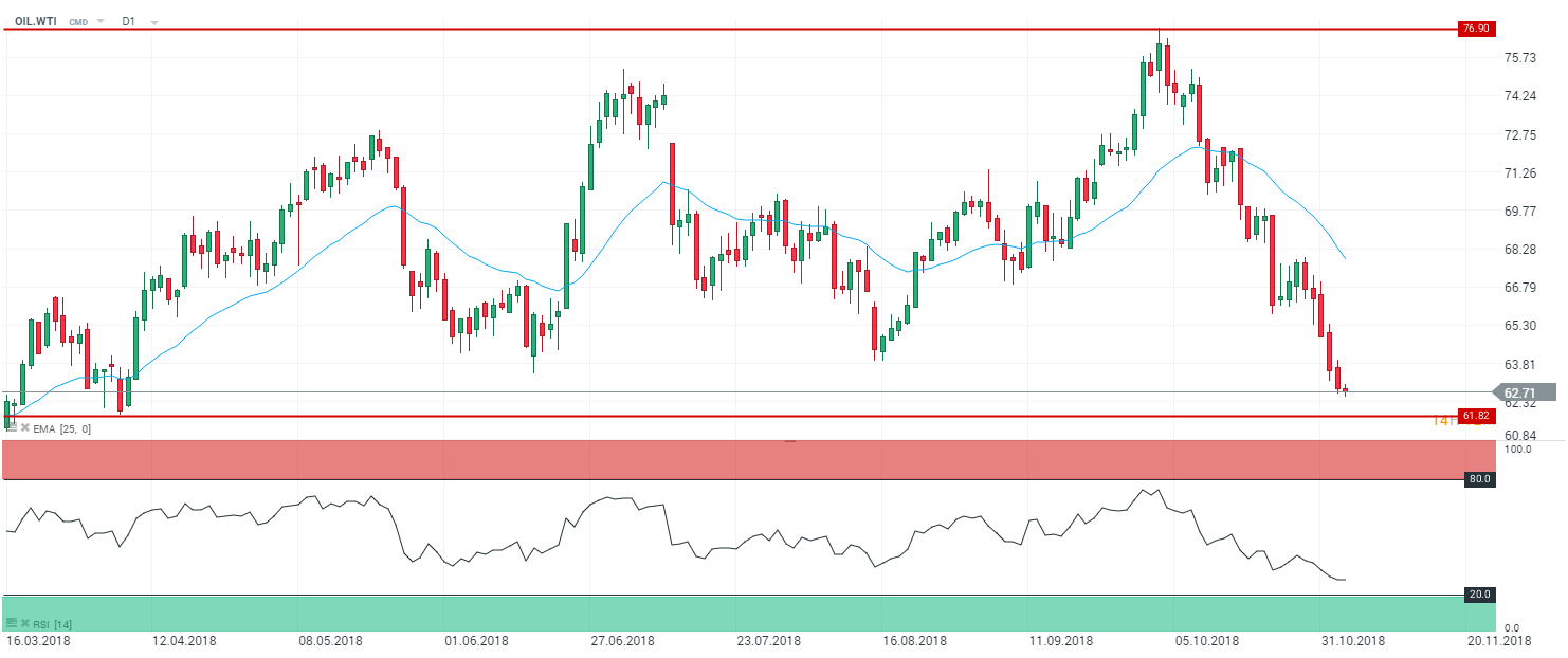 « Sanctions are coming November 5 » - les sanctions arrivent le 5 novembre. Telle est l’image tweetée par Donald Trump vendredi. En effet, l’ensemble des sanctions américaines envers l’Iran sont totalement applicables depuis le 4 novembre. Donald Trump a déclaré que ces dernières mesures constituaient « les sanctions les plus sévères » jamais imposées par les Etats-Unis contre l’Iran. Cependant, le locataire de la Maison-Blanche a réaffirmé que Washington restait ouvert à la conclusion d’un « nouvel accord plus complet » avec Téhéran. De son côté, Hassan Ruhani - Président de la République islamique d’Iran - a promis ce jour de continuer à exporter son pétrole. Inquiet des répercussions d’un prix du pétrole élevé - sur l’issue des « Midterms » - Washington a annoncé que 8 pays bénéficieraient d’une exemption à l’achat de pétrole iranien. Dans ce contexte, nous assistons à la poursuite du repli des cours. Les prix évoluent à présent à 62,40 $ pour un baril de pétrole.