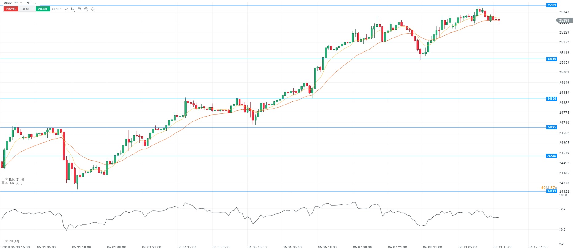 Représentation technique du Dow Jones 30, en H1
