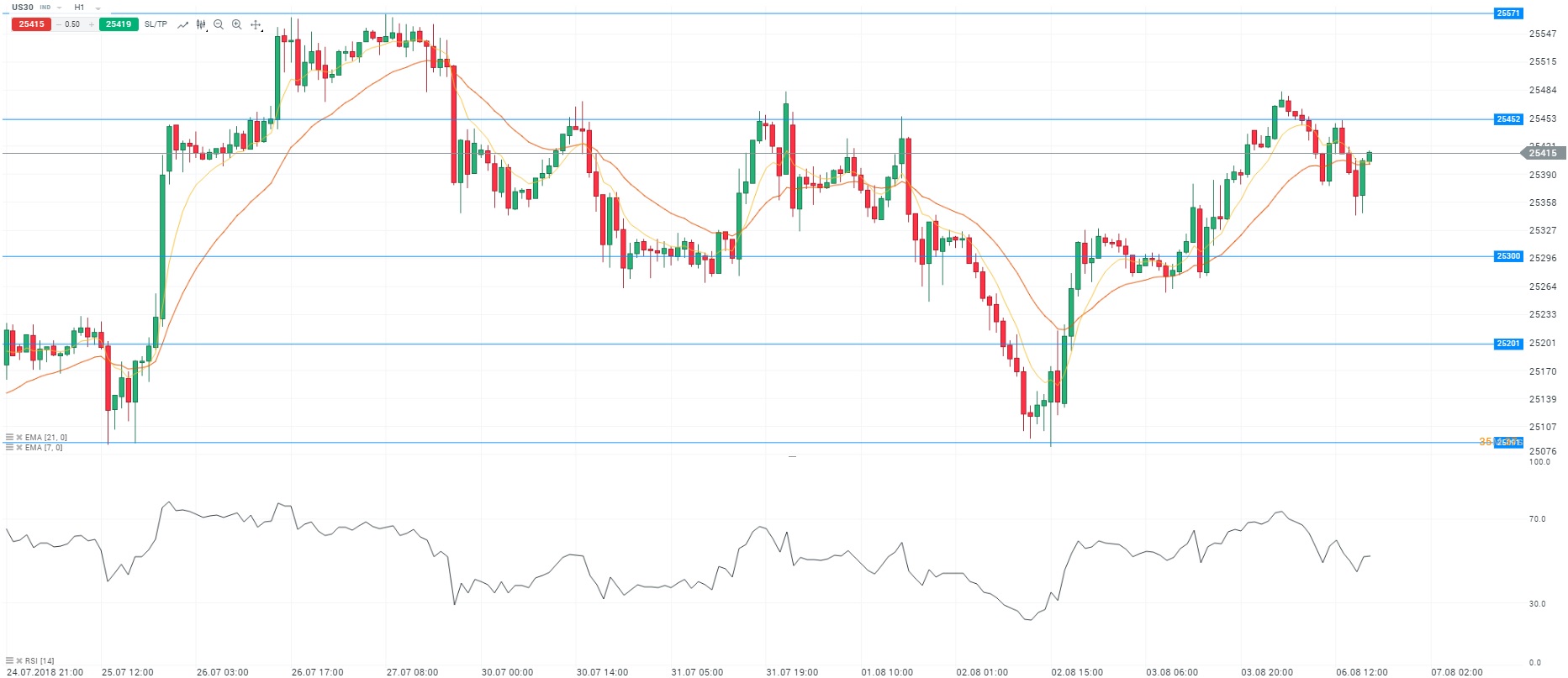 Représentation technique du Dow Jones 30, en H1