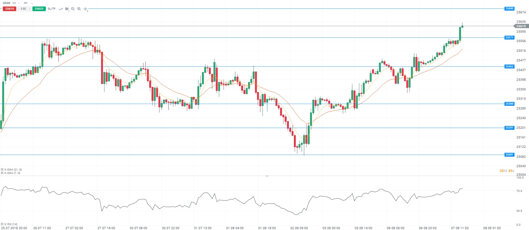 Représentation technique du Dow Jones 30, en H1