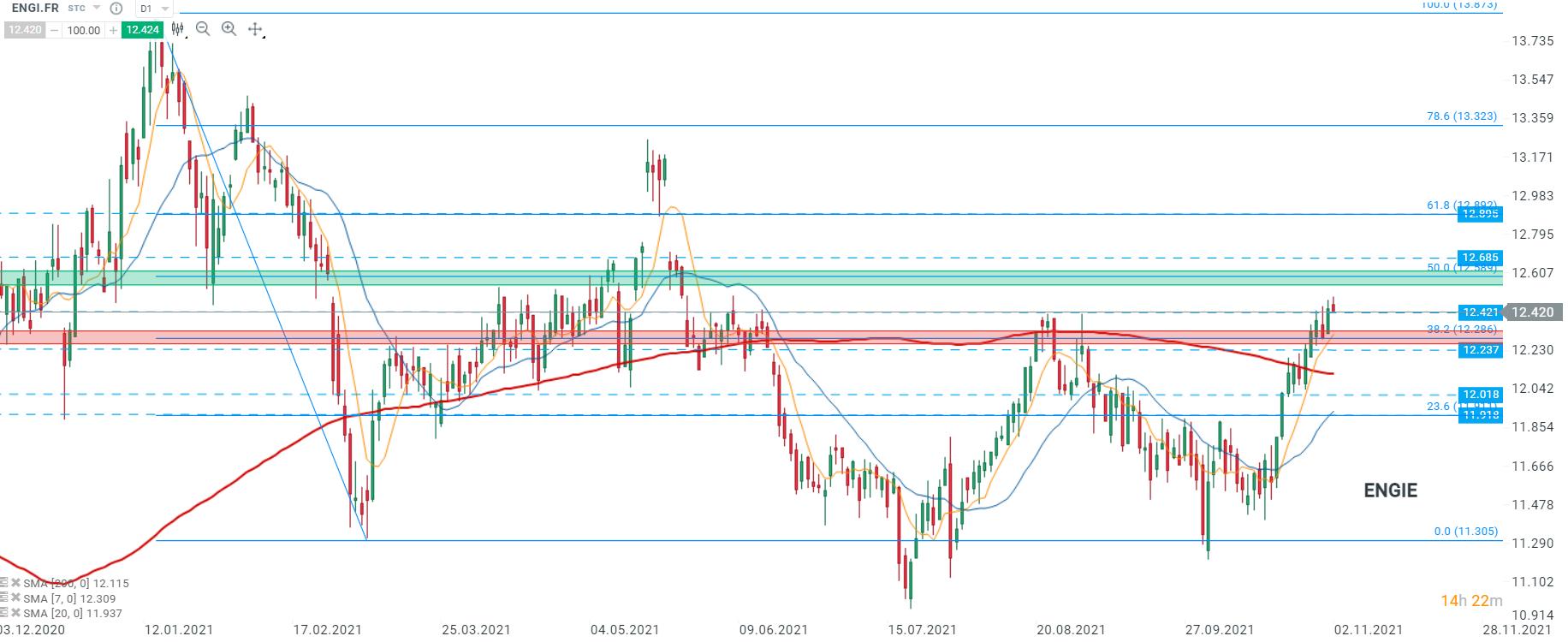 Les cours d’Engie (ENGI.FR) ont ouvert à la hausse mais se replient au moment de la rédaction de ces lignes. Si les cours parviennent à casser la zone de support de 12,421, le mouvement baissier pourrait s’étendre en direction du retracement à 38,2% de la baisse entamée le 14/01/21. Toutefois, si les acheteurs reprennent le contrôle, le retracement à 50% à 12,589 serait à envisager. Source : xStation5