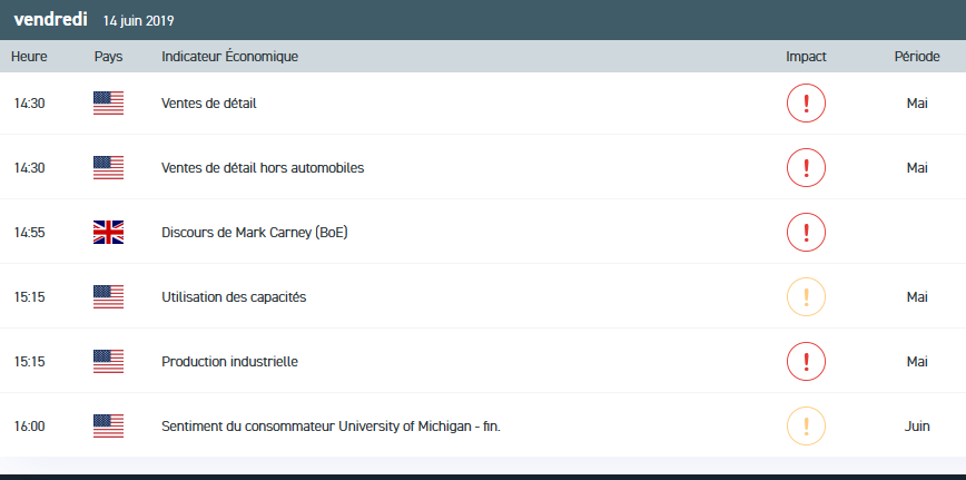 Les indices mondiaux ont fini dans le vert jeudi, soutenus notamment par la progression des valeurs pétrolières dans le sillage de la hausse des cours de l’Or noir en réaction à des attaques visant des pétroliers près du détroit d'Ormuz, par où transite un cinquième de la demande mondiale de pétrole. Ce vendredi, plusieurs rendez-vous sont à noter. La production industrielle et les ventes au détail en provenance de Chine sont attendues à 9h. M.Carney (Banque d’Angleterre) s’exprimera à 15h. Outre-Atlantique, l’indice de la production industrielle (mai) sera publié à 15h15. Toujours aux Etats-Unis, les ventes au détail (14h30) et les anticipations d’inflation (15h15) sont attendues de pied ferme par les investisseurs.