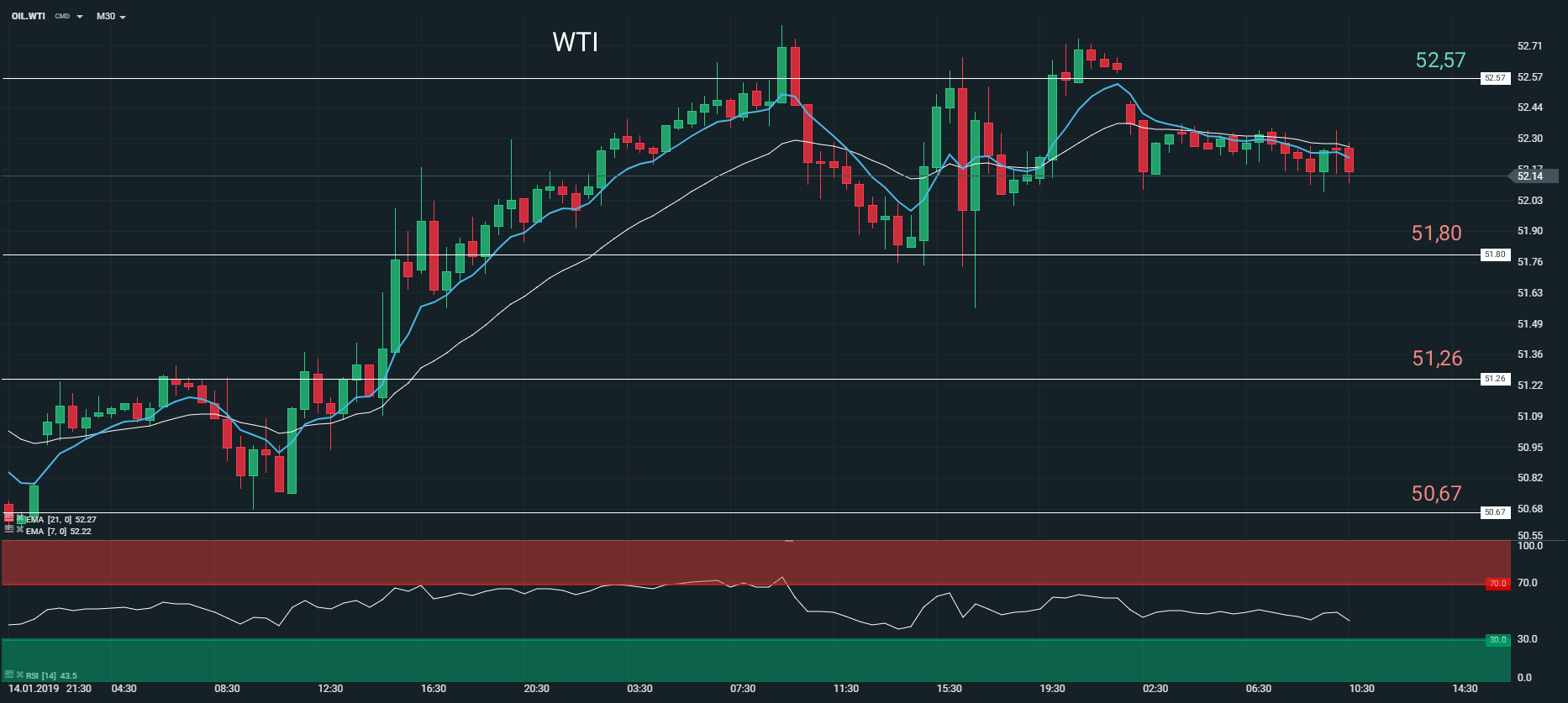 Le département de l’Energie américain a fait état d’une nette contraction des stocks de pétrole brut pour la semaine achevée au 11 janvier. En effet, ces derniers se sont repliés de 2,68 millions de barils à 437,06 millions. Dans le même temps, les stocks d’essence et de produits distillés ont respectivement progressé de 7,5 et de 2,96 millions de barils. En outre, la production américaine a de nouveau augmenté la semaine dernière à 11,9 millions de barils par jour (bpj). Dans un tel contexte, les prix évoluent autour des 52 $ le baril. Sur le plan technique, la toile de fond reste inchangée. C’est pourquoi nous maintenons notre avis positif sur le WTI et estimons qu’il devrait renouer avec le niveau des 55,69 $ à court/moyen terme.
