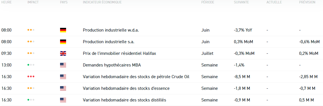 - Production industrielle en Allemagne pour le mois de juin à 8h00