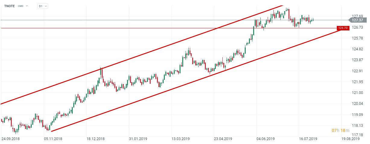 L’obligation américaine poursuit sa progression au sein de son canal haussier - inversement le rendement décroît. Source : Xstation5.