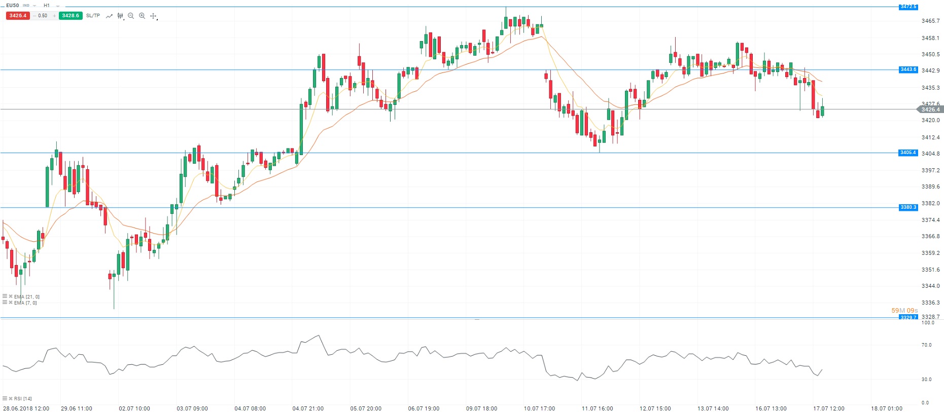 Représentation technique de l’Euro Stoxx 50, en H1