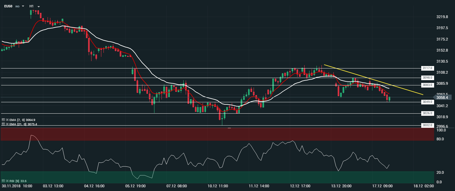 Représentation de l’indice Euro Stoxx 50 (EU50), en unité de temps horaire (H1)