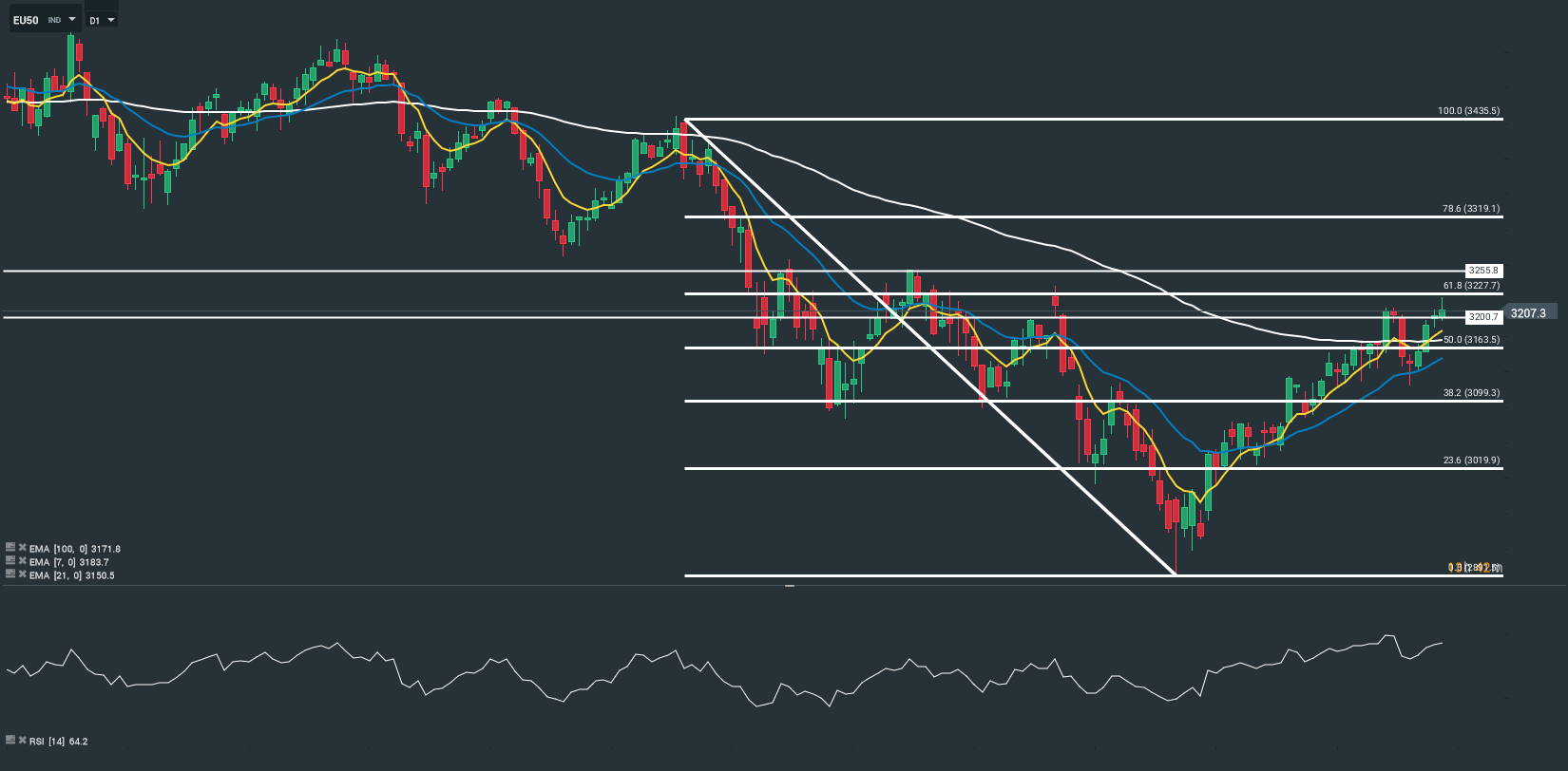 Représentation technique de l’indice Eurostoxx50, en D1