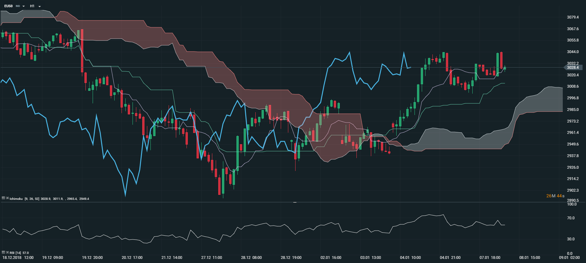 Représentation technique de l'indice Euro Stoxx 50, en H1