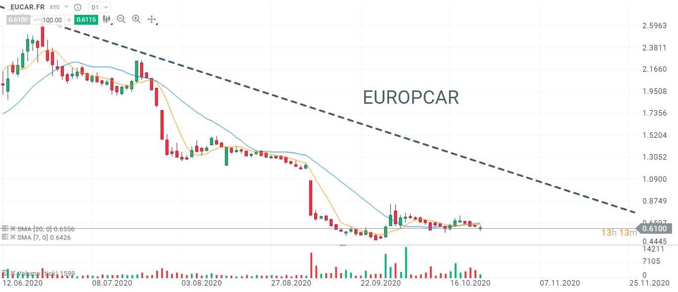 Le titre Europcar (EUCAR.FR) a perdu près de 87% depuis de le début de l'année. Source : xStation5