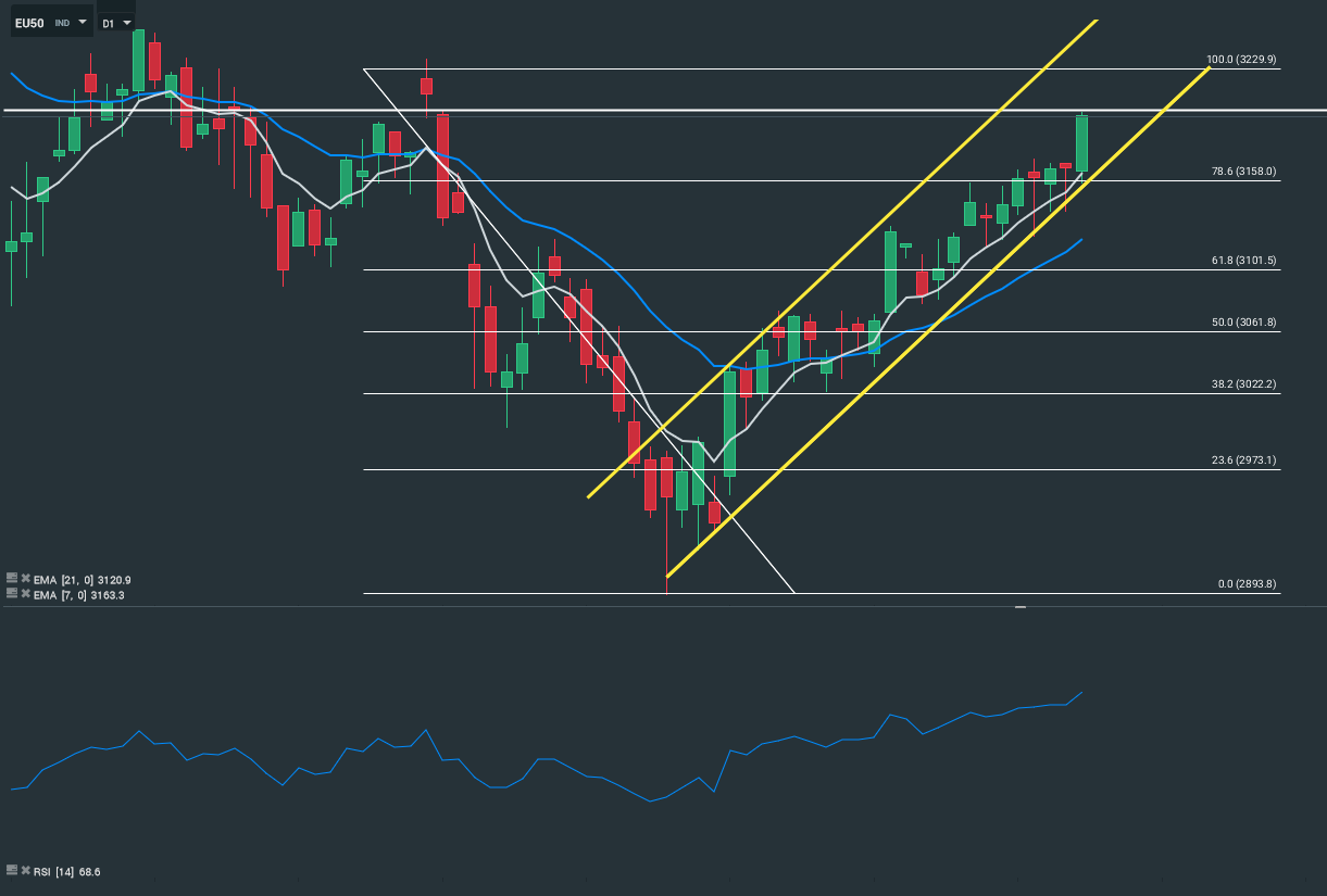 Représentation technique de l’indice EuroStoxx 50 (EU50), en D1