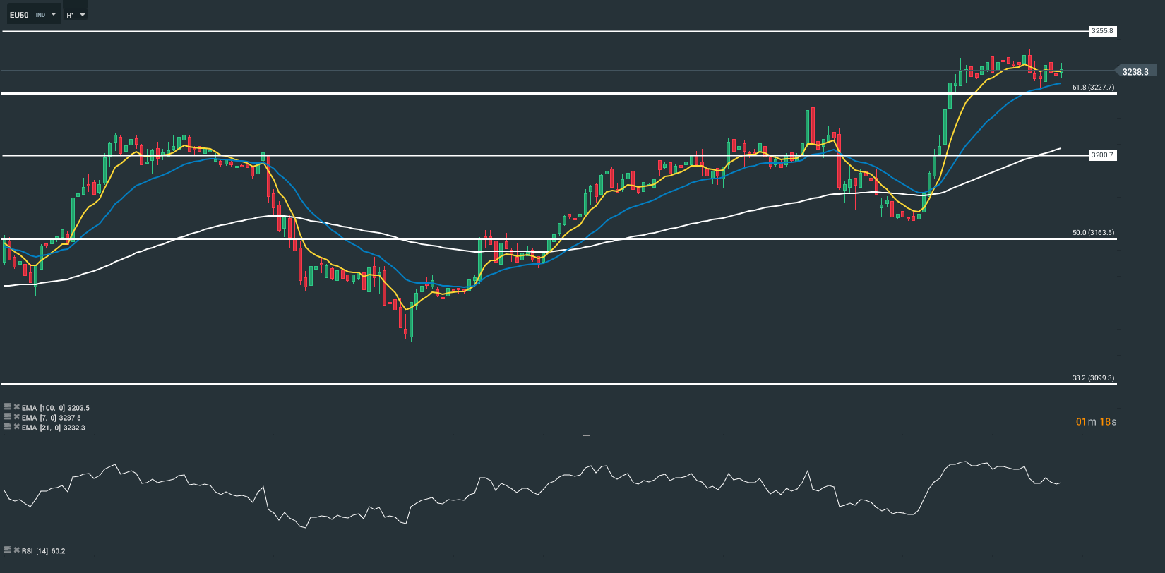 Représentation technique de l’indice Euro Stoxx 50, en H1.
