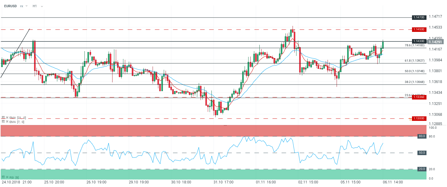 Il semblerait que les pressions vendeuses sur l’EURUSD se soient atténuées. Et pour cause, les bonnes données publiées ce jour en provenance de l’Allemagne et de la zone euro ont rassuré les investisseurs dans ce climat d’incertitude entourant l’Italie et l’issue du Brexit. L’indice PMI des services pour l’Allemagne et la zone euro est ressorti supérieur aux attentes pour le mois d’octobre, de même que l’indice des prix à la production qui en rythme annualisé s’établit à 4,5 %. Voici une bonne nouvelle pour la zone euro, qui se trouve de nouveau dans une situation délicate envers l’Italie. Pour rappel, la Commission européenne a rejeté le budget italien pour 2019 - et a invité le gouvernement italien à proposer un nouveau budget au plus tard le 13 novembre. Toutefois, l’Italie ne l’entend pas de cette façon est a opposé une fin de non-recevoir à Bruxelles. Ainsi, les statiques publiées ce matin rassurent les opérateurs dans cette configuration de marché attendant plus que jamais l’issue des élections de mi-mandat aux Etats-Unis.