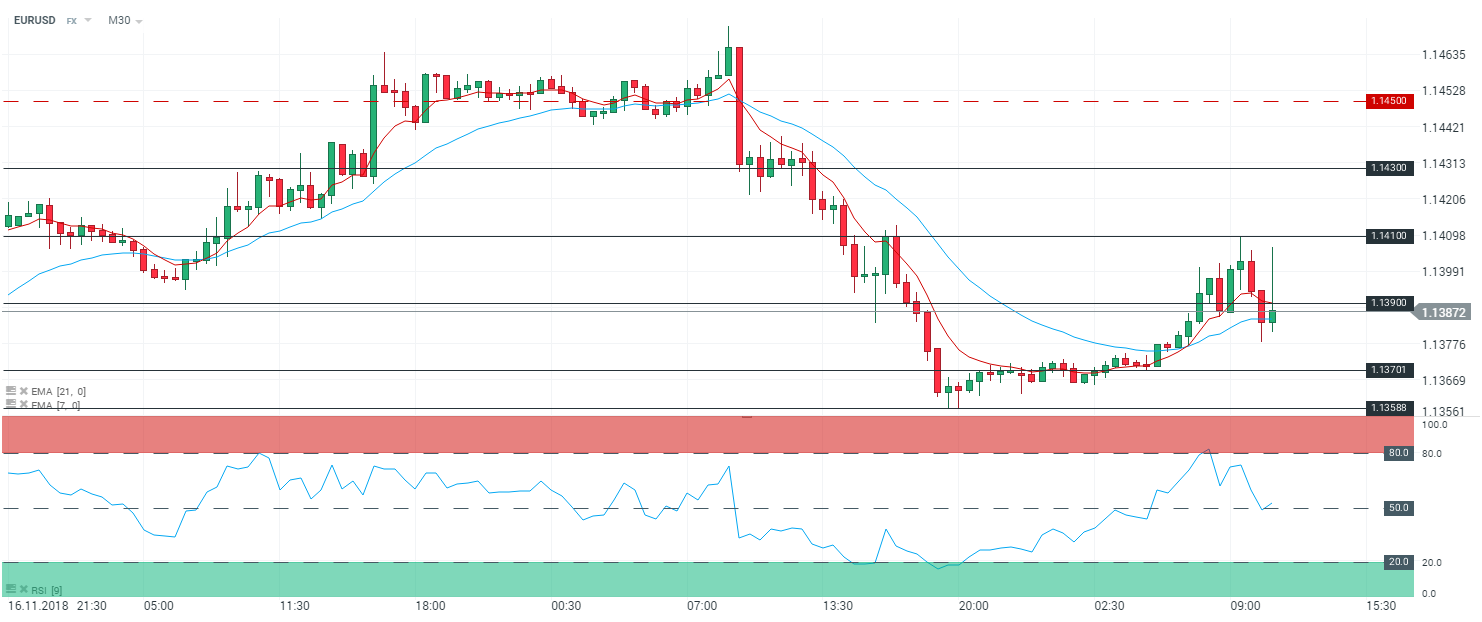 Aucune publication macroéconomique aujourd’hui ne serait susceptible d’influer sur l’évolution d cours de la paire EURUSD. Les opérateurs sont avant tout attentifs aux propos que tiendra la Commission européenne envers l’Italie. Et pour cause, le gouvernement italien a engagé un véritable bras de fer avec Bruxelles - refusant de revoir son budget 2019 et ses prévisions de croissance. A ce sujet l’ISTAT (équivalent de l’INSEE pour l’Italie) a abaissé sa prévision de croissance pour 2018 à 1,1 % et non 1,4 % comme le maintient le gouvernement italien. Dans ce contexte, Bruxelles pourrait placer Rome en procédure de déficit excessif - ce qui se traduirait par une lourde pénalité de l’ordre de 0,2 % du produit intérieur brut italien. Mais, même si cette sanction ne semble pas la meilleure réponse à apporter au gouvernement (auto proclamé) populiste, il est difficilement imaginable que la Commission européenne entérine le budget italien.