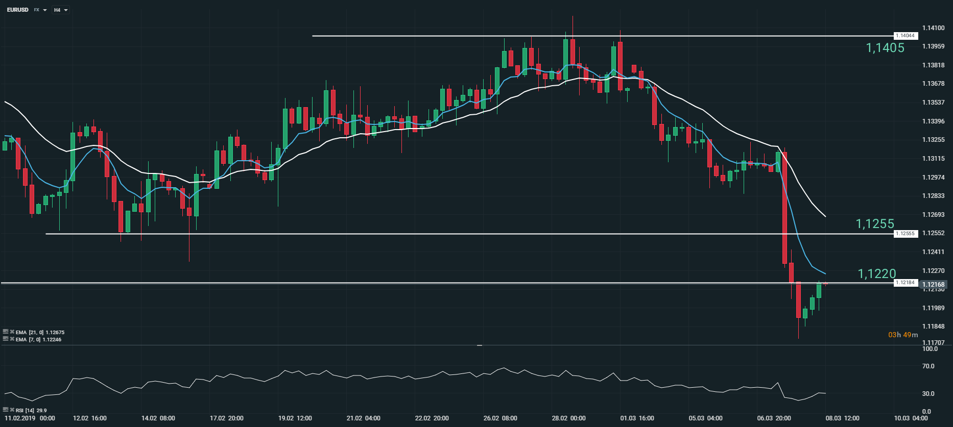 C’est officiel, Mario Draghi, président de la Banque centrale européenne (BCE) a annoncé un nouveau programme de « targeted long-term refinancing operations » (TLTRO) à destination des banques. Ce dernier consiste en une série d’opérations de refinancements des banques commerciales et sera lancé à partir de septembre 2019 et s’étendra jusqu’au mois de mars 2021. En outre, la BCE a laissé sa politique monétaire inchangée car l’économie européenne traverse une « une période de faiblesse prolongée et d’incertitude généralisée ». Sur le volet des changes, la paire EURUSD s’est effondré mercredi sous le seuil des 1,1250 $ pour 1 €.